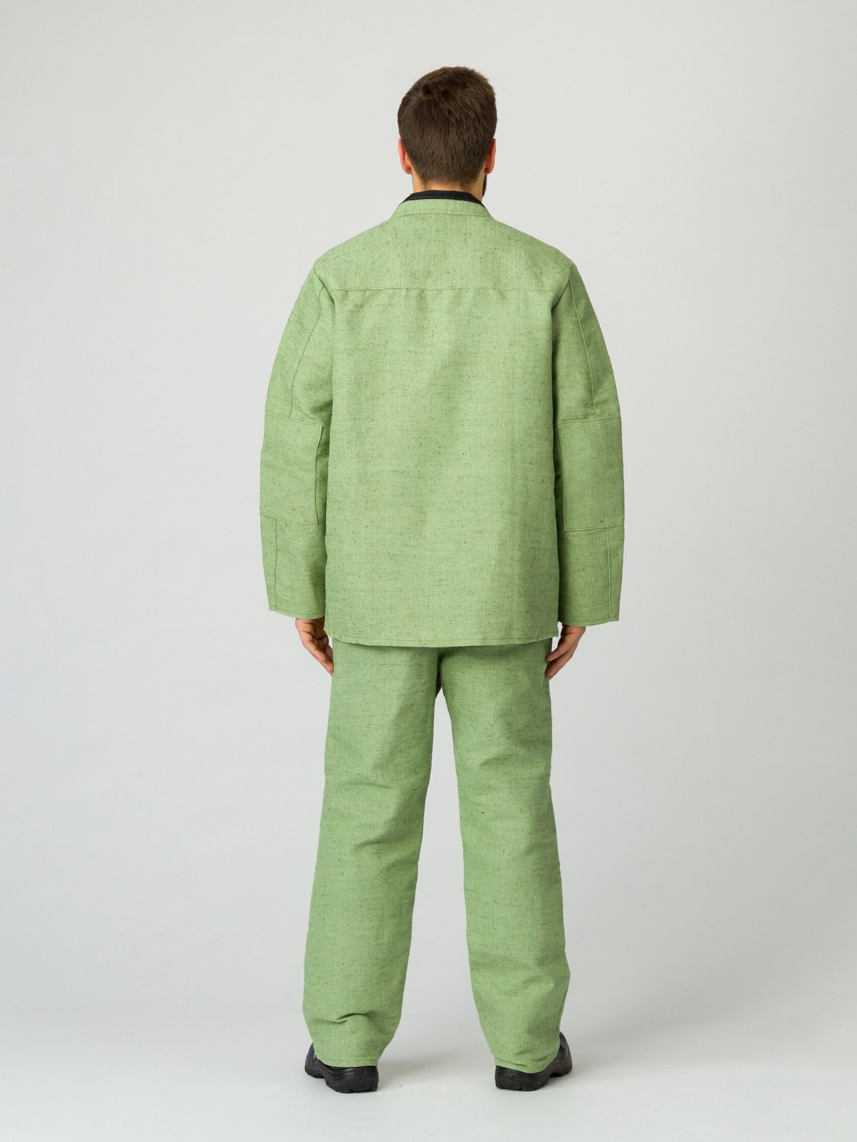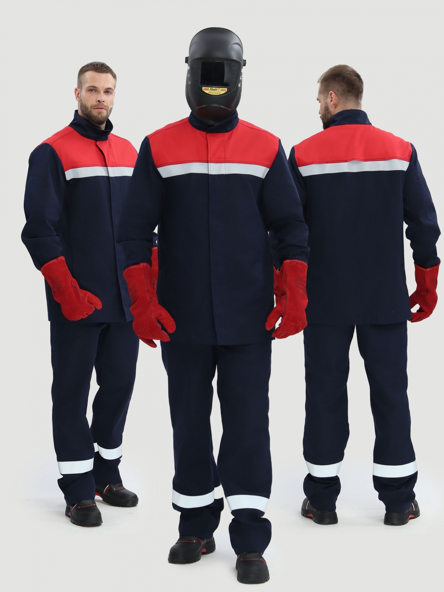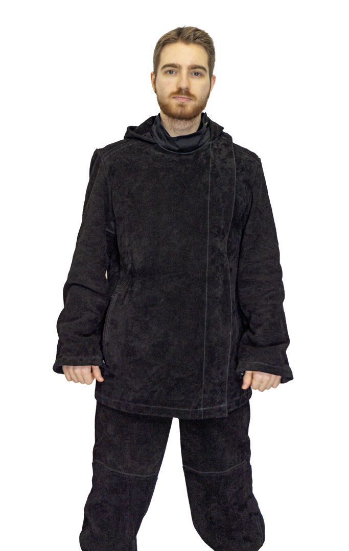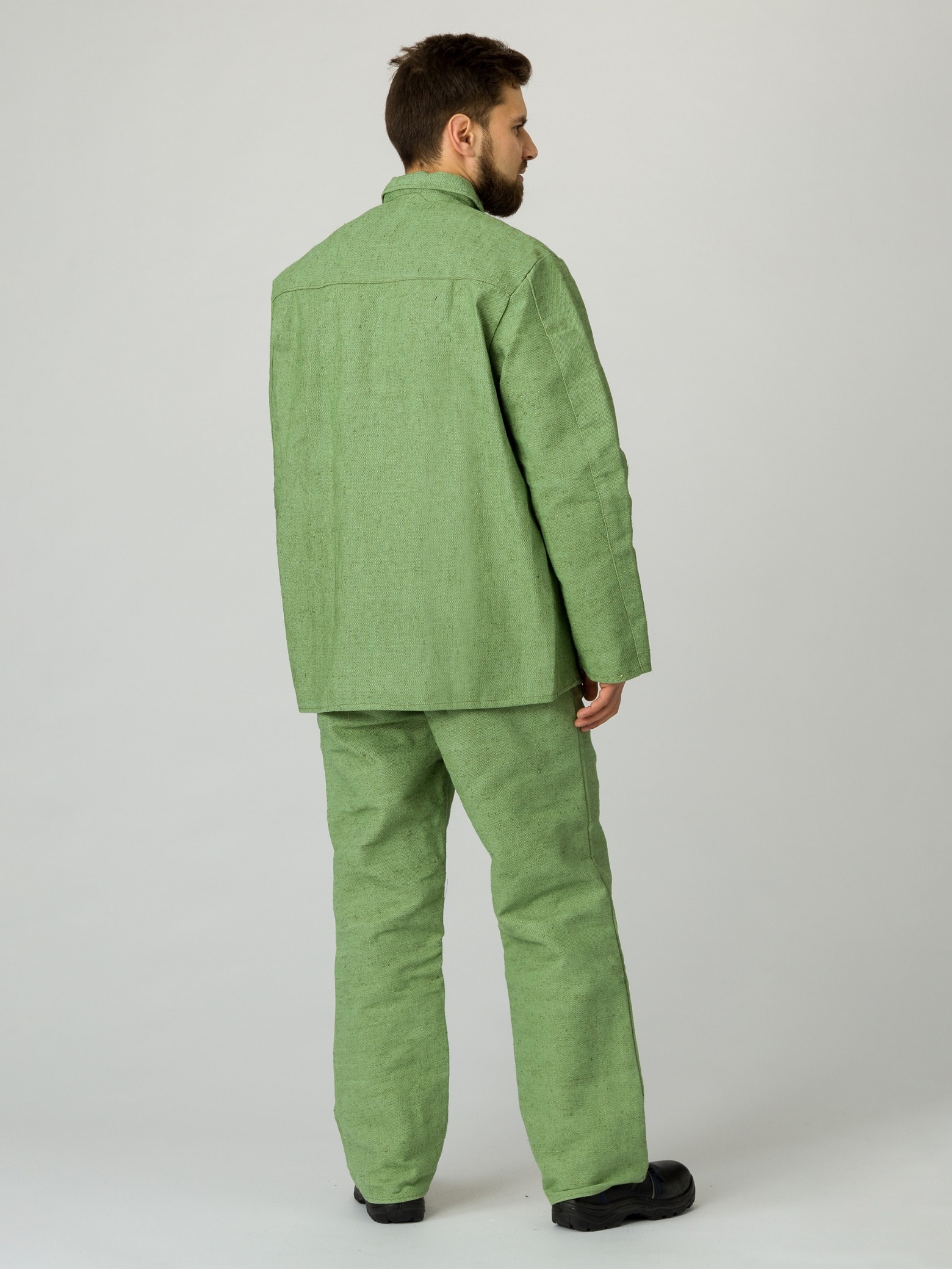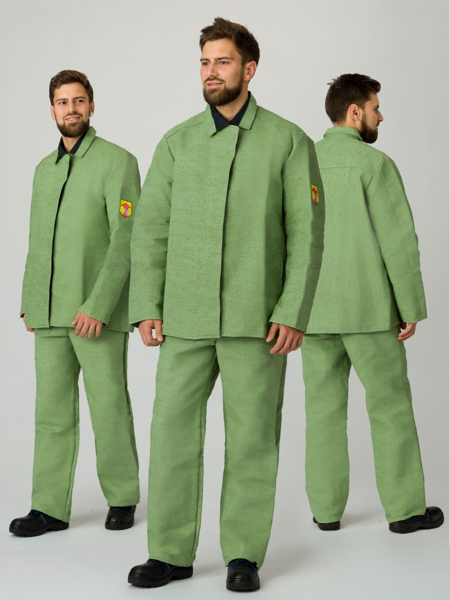 – Имеет вентилирующих клапанов в области спины – Обеспечивает максимальный комфорт и защиту от искр расплавленного – Передняя часть из плотного подкладочного спилка – Усиление локтей и коленей дополнительным слоем спилка – Рукава полностью из спилка –Задняя часть выполнена - из огнеупорной ХБ ткани 450гр. - Куртка комплектуется капюшоном из спилка. - Поясничный отдел закрыт широким поясом – Запах куртки защищен специальным клапаном, молния скрыта спилковой планкой с фиксацией на кнопки. – Защитный клапан в районе запаха куртки – Брюки с утягивающей резинкой на поясе – Нижняя задняя часть брюк из спилка – защищает от прогорания и увеличивает срок службы – Усиленные швы, прошиты арамидной нитью.