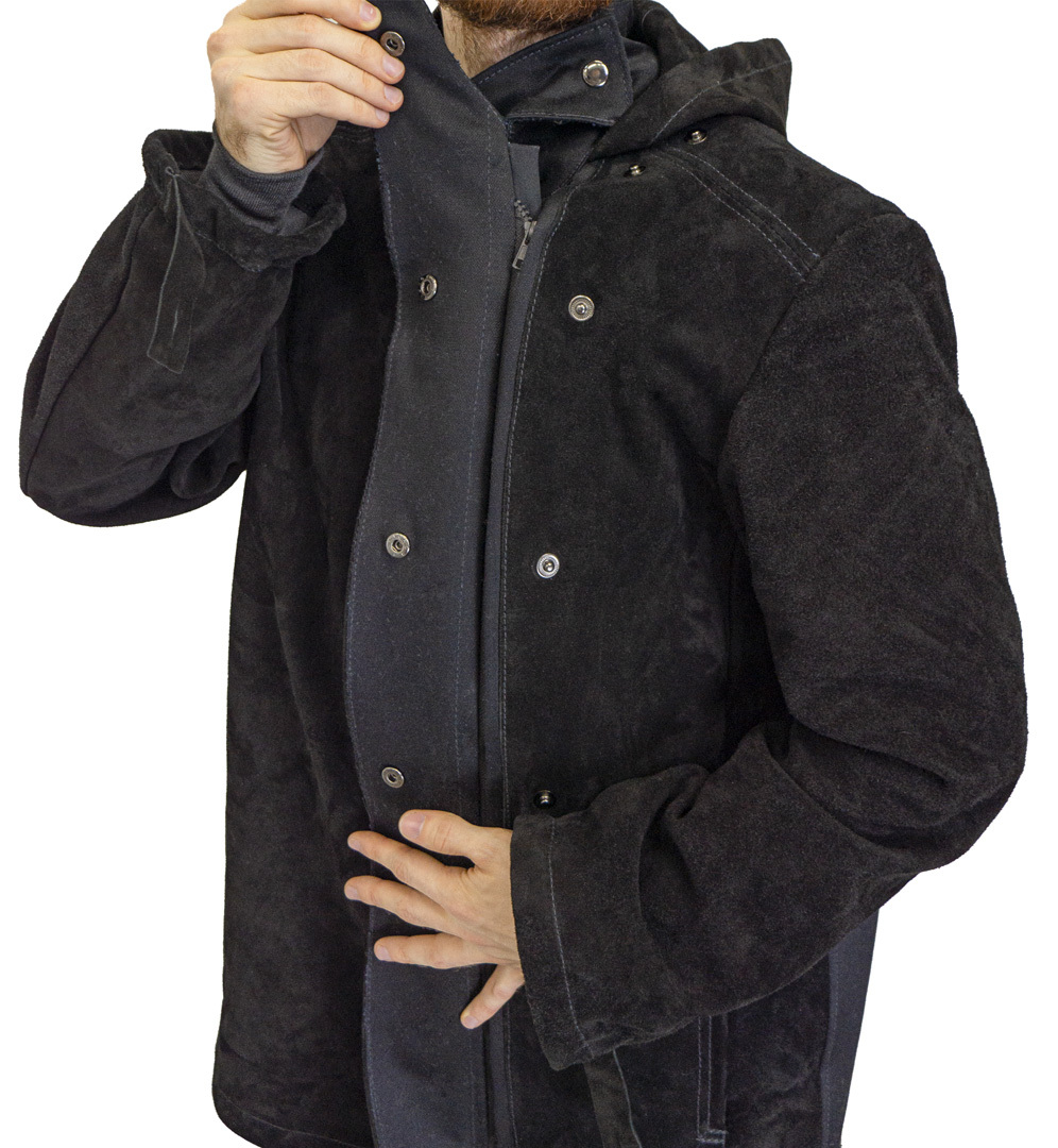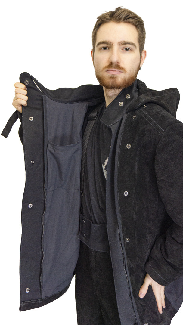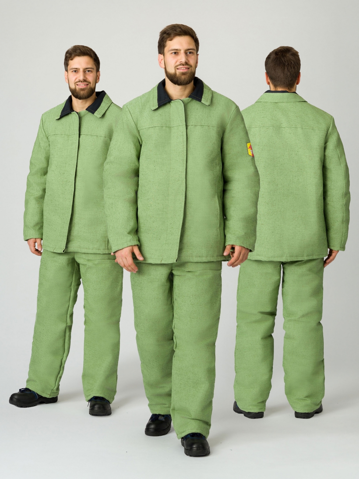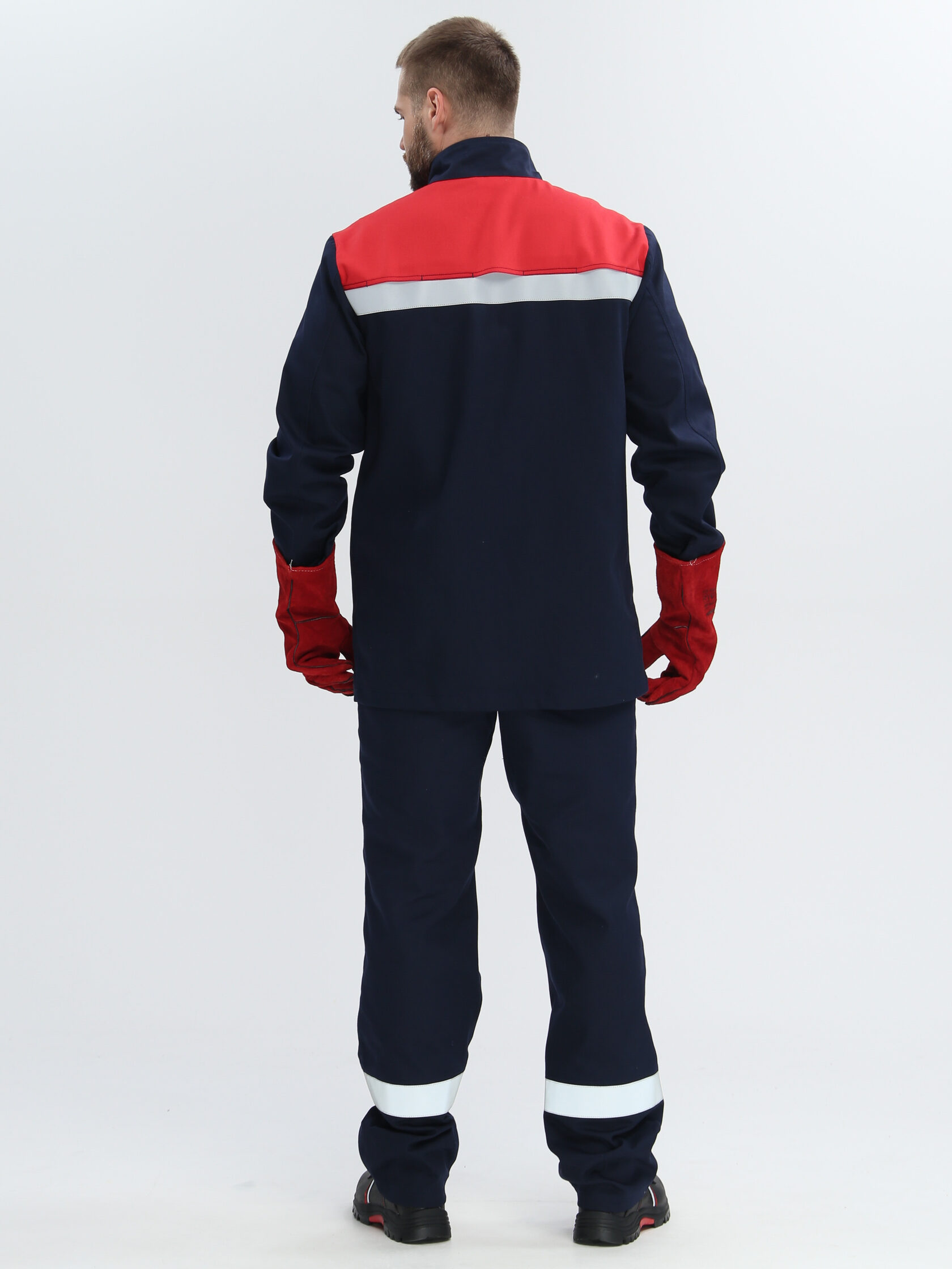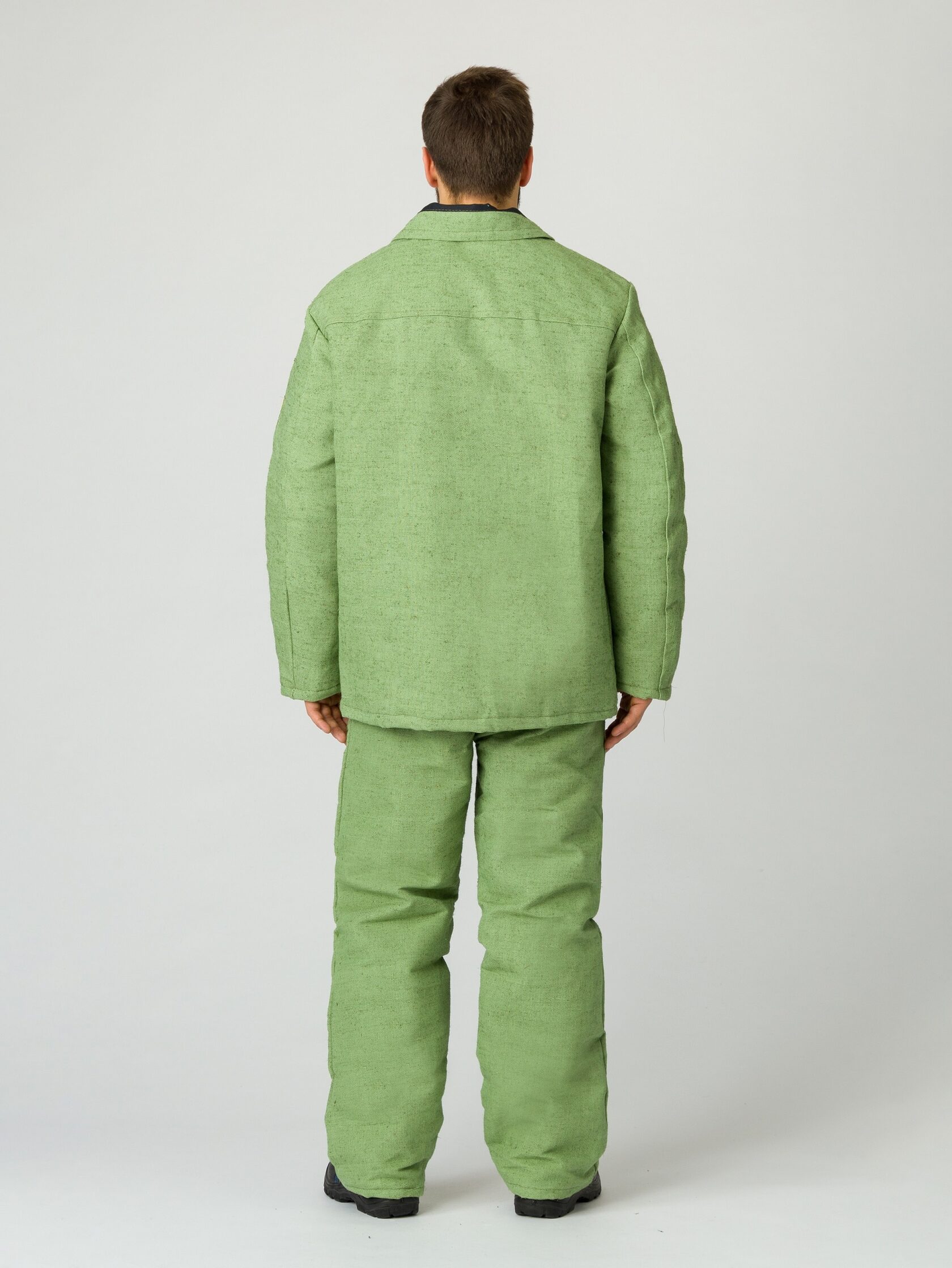 – Имеет вентилирующих клапанов в области спины – Обеспечивает максимальный комфорт и защиту от искр расплавленного – Передняя часть из плотного подкладочного спилка – Усиление локтей и коленей дополнительным слоем спилка – Рукава полностью из спилка –Задняя часть выполнена - из огнеупорной ХБ ткани 450гр. - Куртка комплектуется капюшоном из спилка. - Поясничный отдел закрыт широким поясом – Запах куртки защищен специальным клапаном, молния скрыта спилковой планкой с фиксацией на кнопки. – Защитный клапан в районе запаха куртки – Брюки с утягивающей резинкой на поясе – Нижняя задняя часть брюк из спилка – защищает от прогорания и увеличивает срок службы – Усиленные швы, прошиты арамидной нитью.