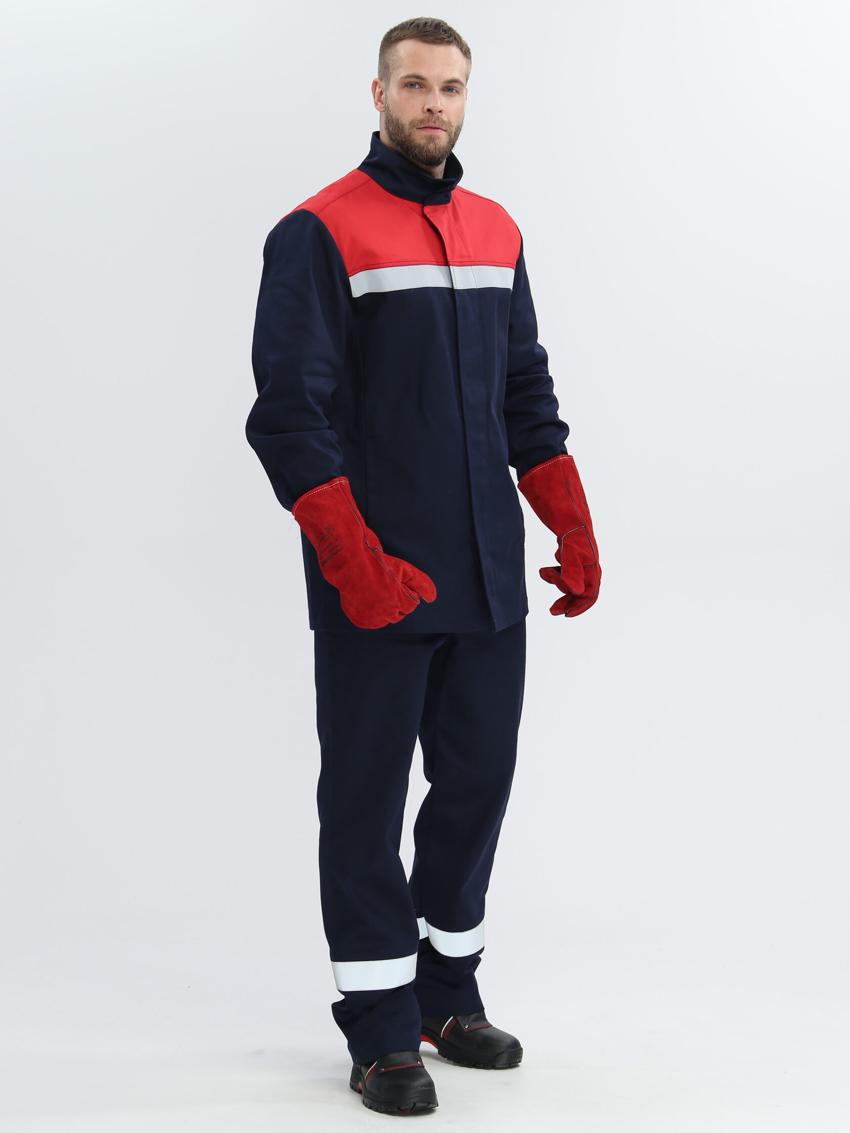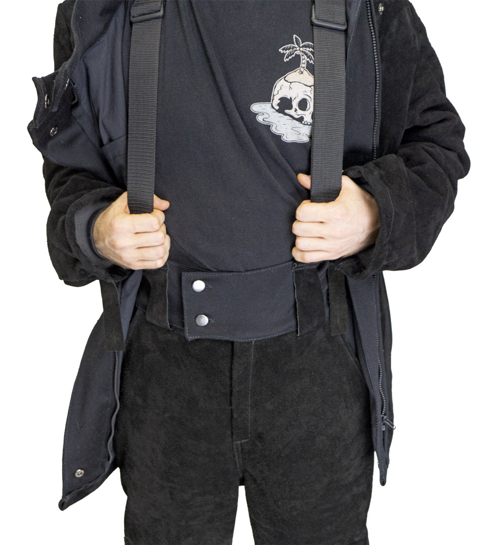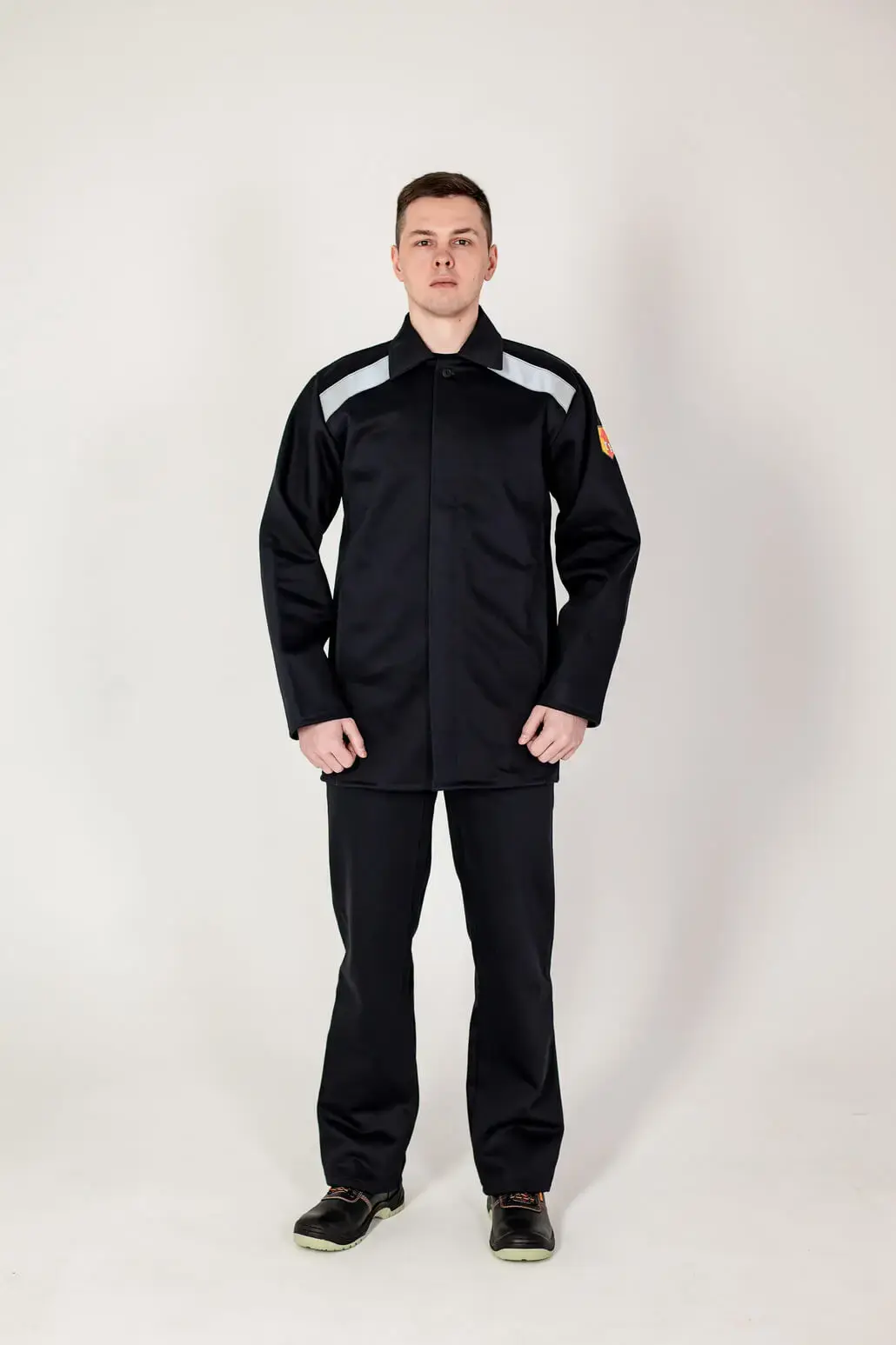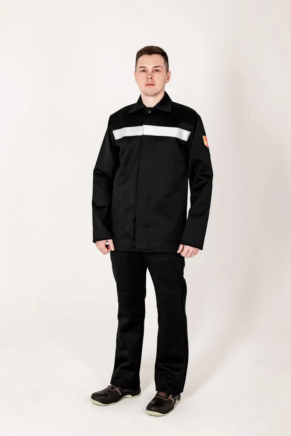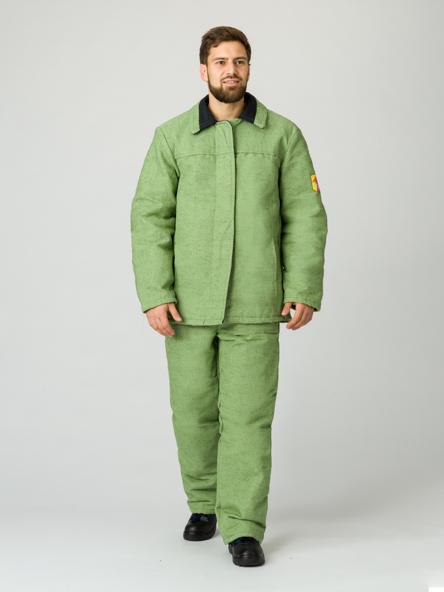 – Имеет вентилирующих клапанов в области спины – Обеспечивает максимальный комфорт и защиту от искр расплавленного – Передняя часть из плотного подкладочного спилка – Усиление локтей и коленей дополнительным слоем спилка – Рукава полностью из спилка –Задняя часть выполнена - из огнеупорной ХБ ткани 450гр. - Куртка комплектуется капюшоном из спилка. - Поясничный отдел закрыт широким поясом – Запах куртки защищен специальным клапаном, молния скрыта спилковой планкой с фиксацией на кнопки. – Защитный клапан в районе запаха куртки – Брюки с утягивающей резинкой на поясе – Нижняя задняя часть брюк из спилка – защищает от прогорания и увеличивает срок службы – Усиленные швы, прошиты арамидной нитью.