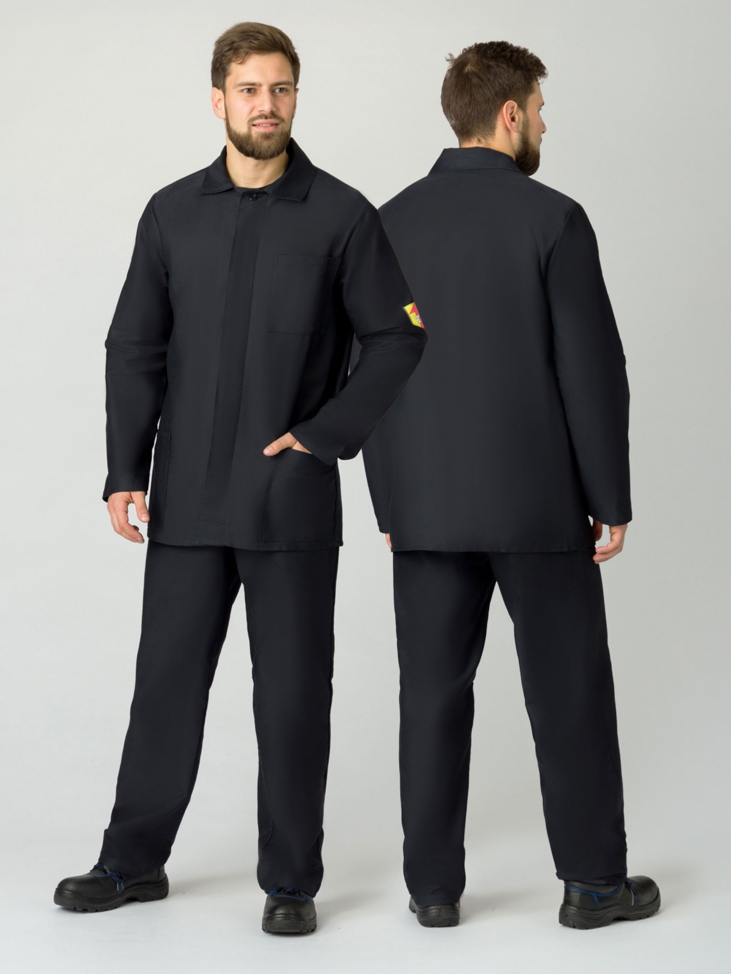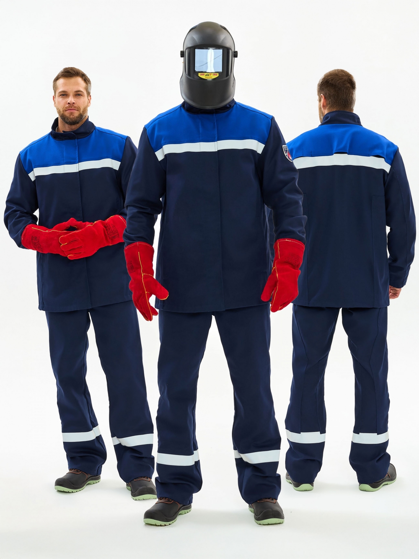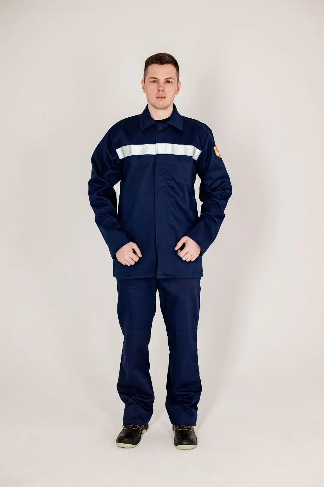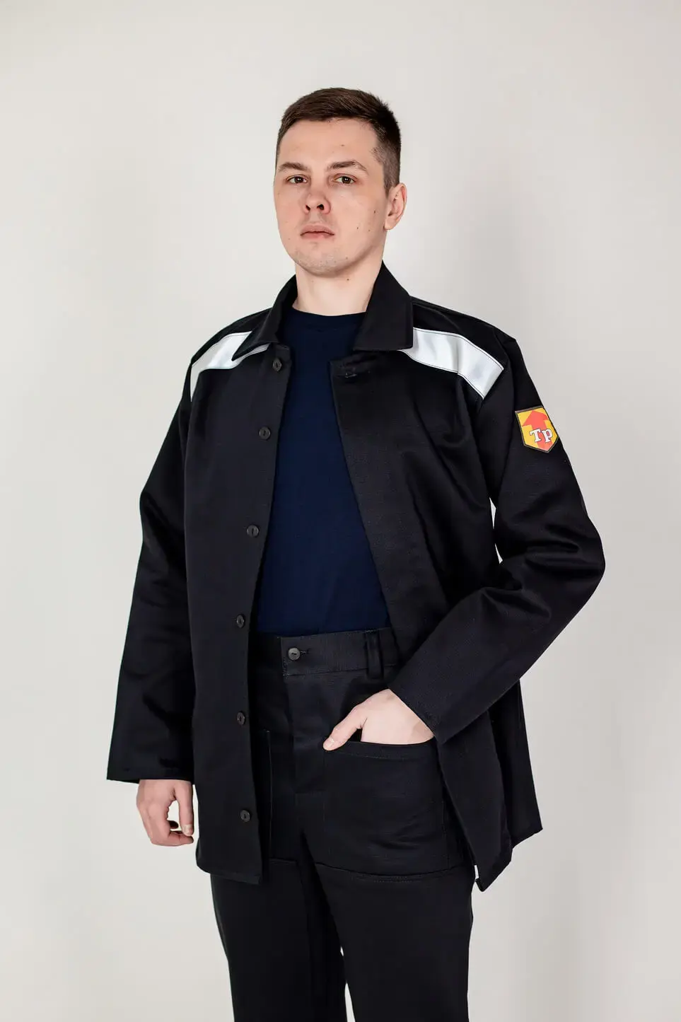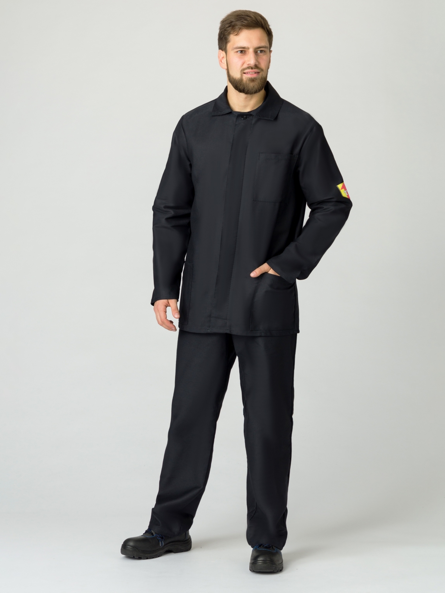 – Имеет вентилирующих клапанов в области спины – Обеспечивает максимальный комфорт и защиту от искр расплавленного – Передняя часть из плотного подкладочного спилка – Усиление локтей и коленей дополнительным слоем спилка – Рукава полностью из спилка –Задняя часть выполнена - из огнеупорной ХБ ткани 450гр. - Куртка комплектуется капюшоном из спилка. - Поясничный отдел закрыт широким поясом – Запах куртки защищен специальным клапаном, молния скрыта спилковой планкой с фиксацией на кнопки. – Защитный клапан в районе запаха куртки – Брюки с утягивающей резинкой на поясе – Нижняя задняя часть брюк из спилка – защищает от прогорания и увеличивает срок службы – Усиленные швы, прошиты арамидной нитью.