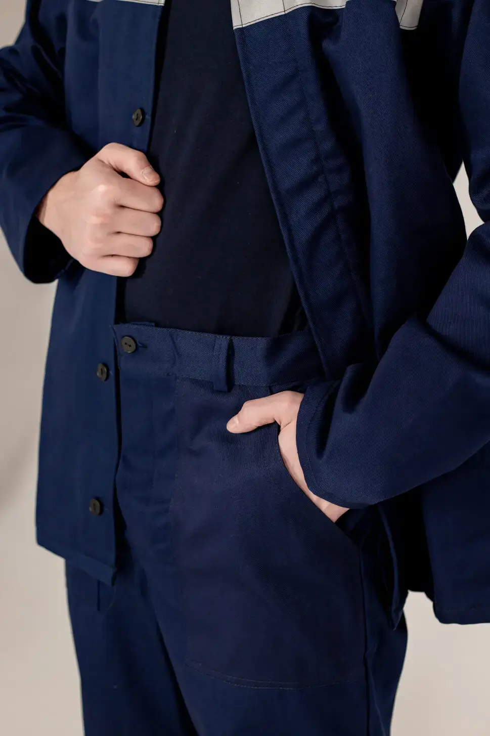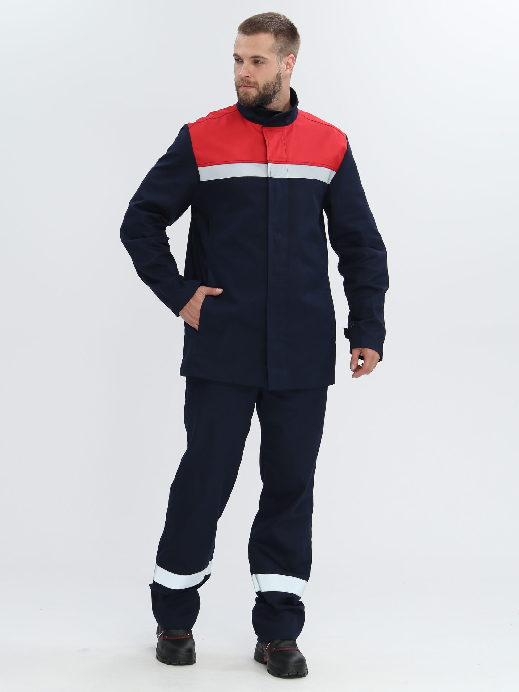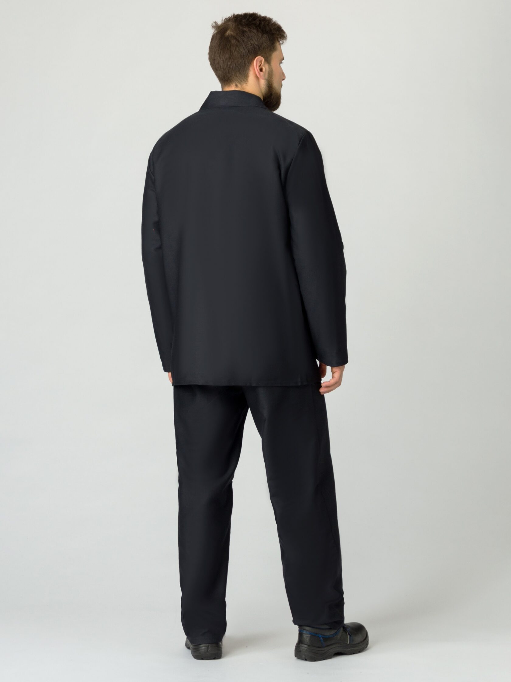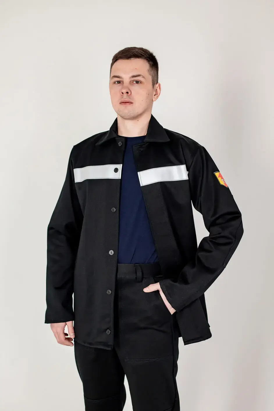 – Имеет вентилирующих клапанов в области спины – Обеспечивает максимальный комфорт и защиту от искр расплавленного – Передняя часть из плотного подкладочного спилка – Усиление локтей и коленей дополнительным слоем спилка – Рукава полностью из спилка –Задняя часть выполнена - из огнеупорной ХБ ткани 450гр. - Куртка комплектуется капюшоном из спилка. - Поясничный отдел закрыт широким поясом – Запах куртки защищен специальным клапаном, молния скрыта спилковой планкой с фиксацией на кнопки. – Защитный клапан в районе запаха куртки – Брюки с утягивающей резинкой на поясе – Нижняя задняя часть брюк из спилка – защищает от прогорания и увеличивает срок службы – Усиленные швы, прошиты арамидной нитью.