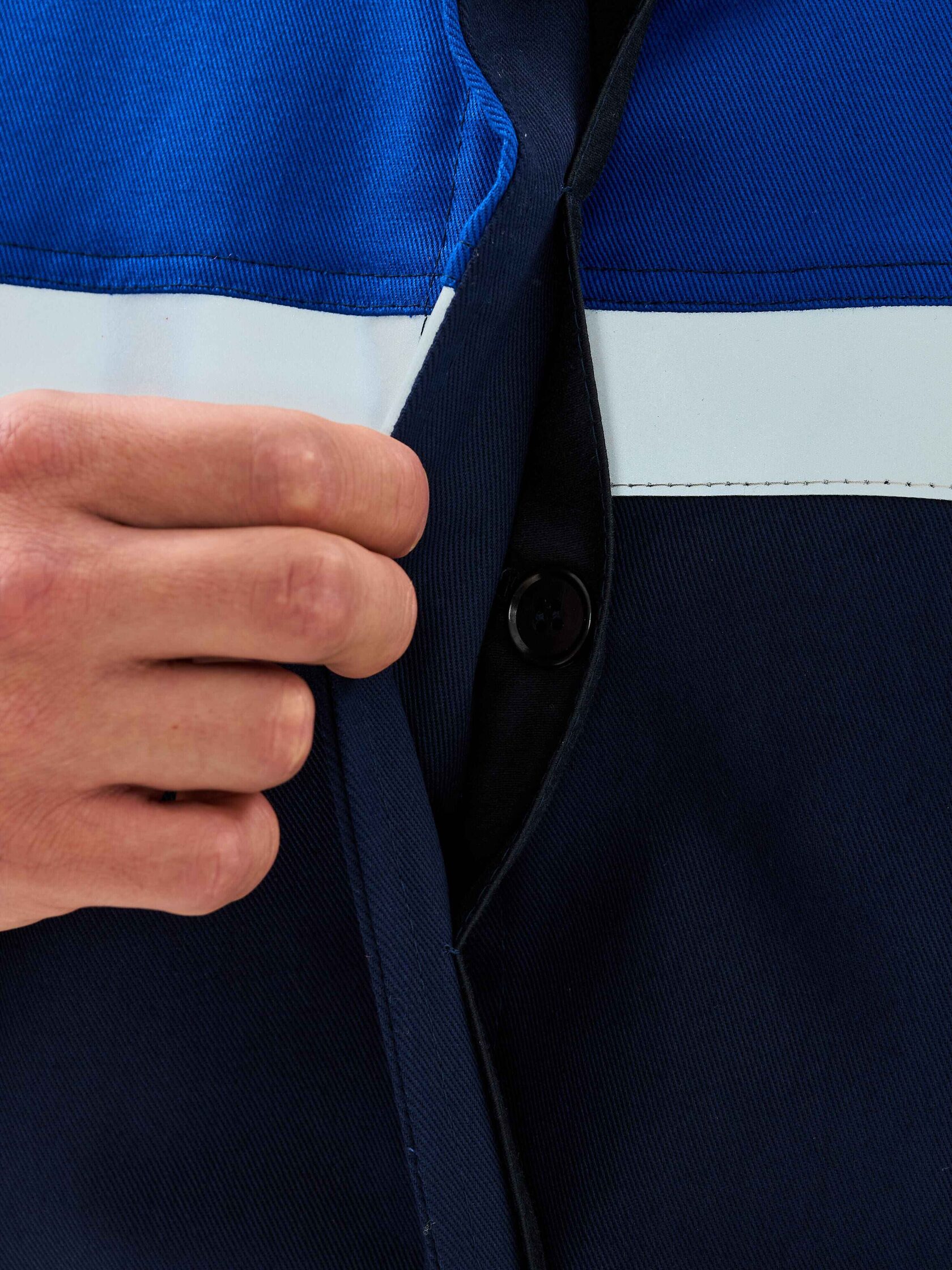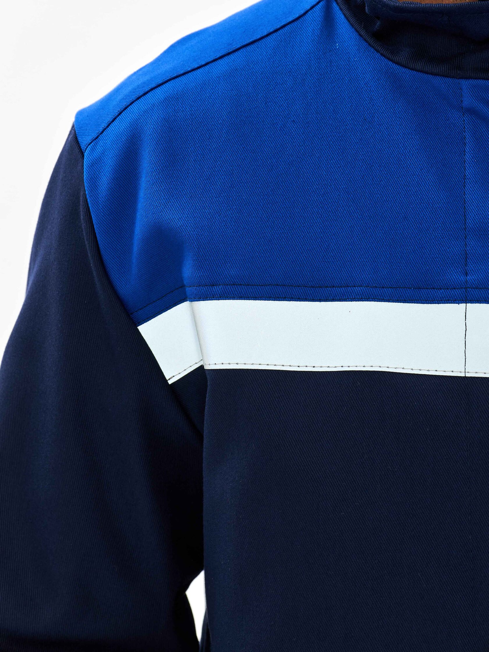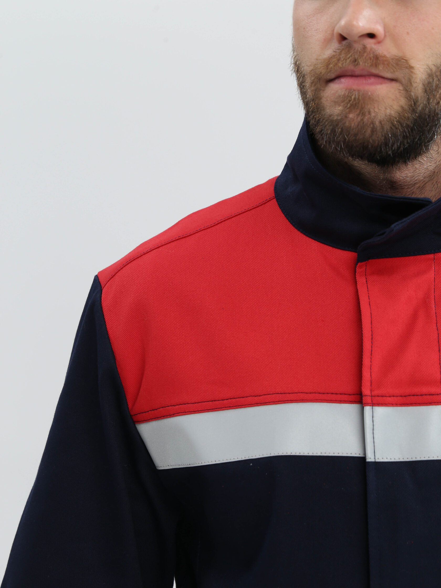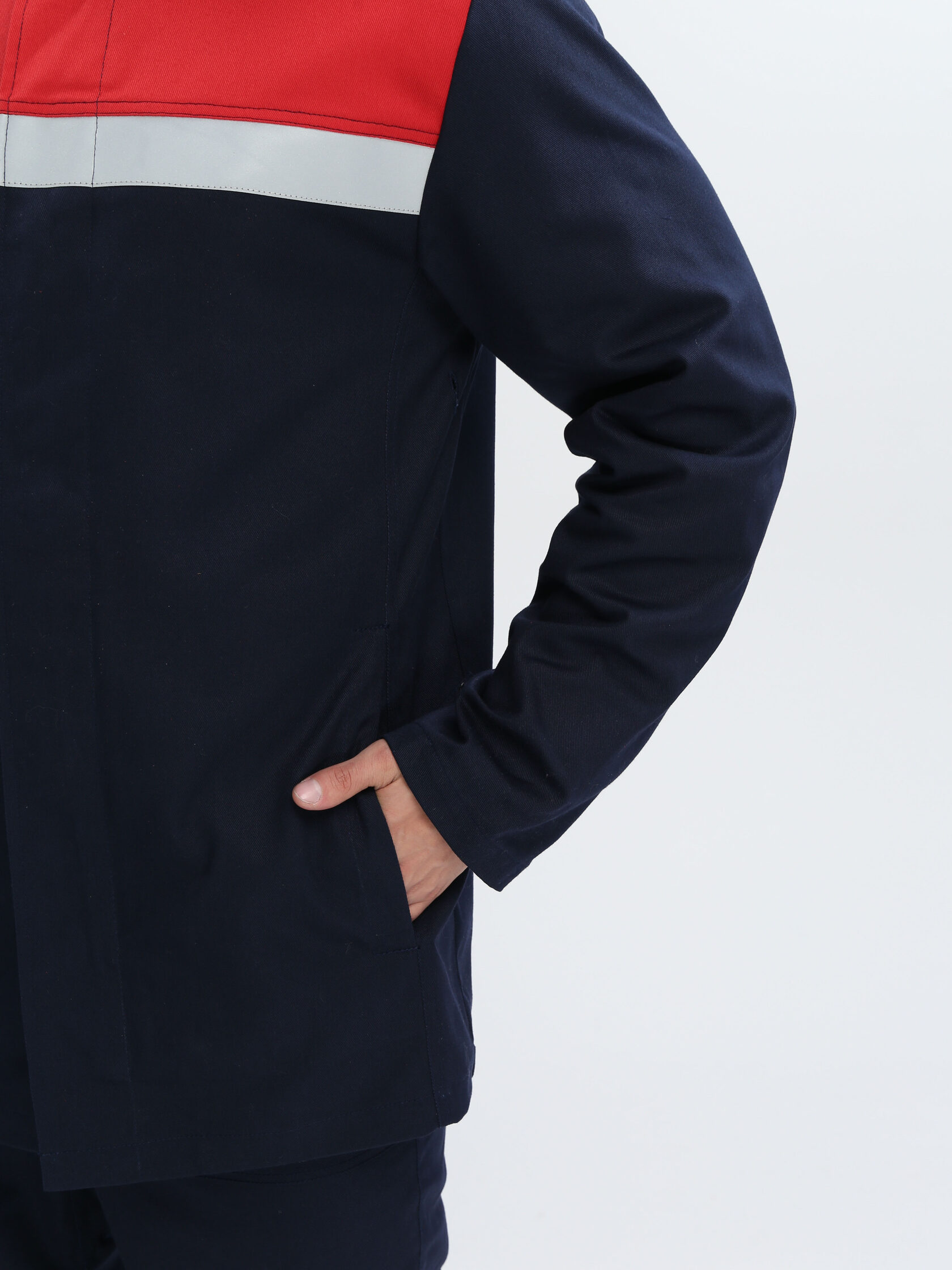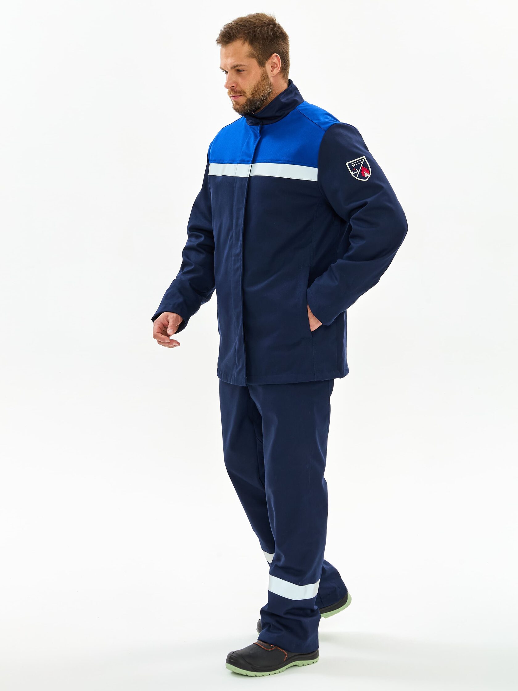 – Имеет вентилирующих клапанов в области спины – Обеспечивает максимальный комфорт и защиту от искр расплавленного – Передняя часть из плотного подкладочного спилка – Усиление локтей и коленей дополнительным слоем спилка – Рукава полностью из спилка –Задняя часть выполнена - из огнеупорной ХБ ткани 450гр. - Куртка комплектуется капюшоном из спилка. - Поясничный отдел закрыт широким поясом – Запах куртки защищен специальным клапаном, молния скрыта спилковой планкой с фиксацией на кнопки. – Защитный клапан в районе запаха куртки – Брюки с утягивающей резинкой на поясе – Нижняя задняя часть брюк из спилка – защищает от прогорания и увеличивает срок службы – Усиленные швы, прошиты арамидной нитью.