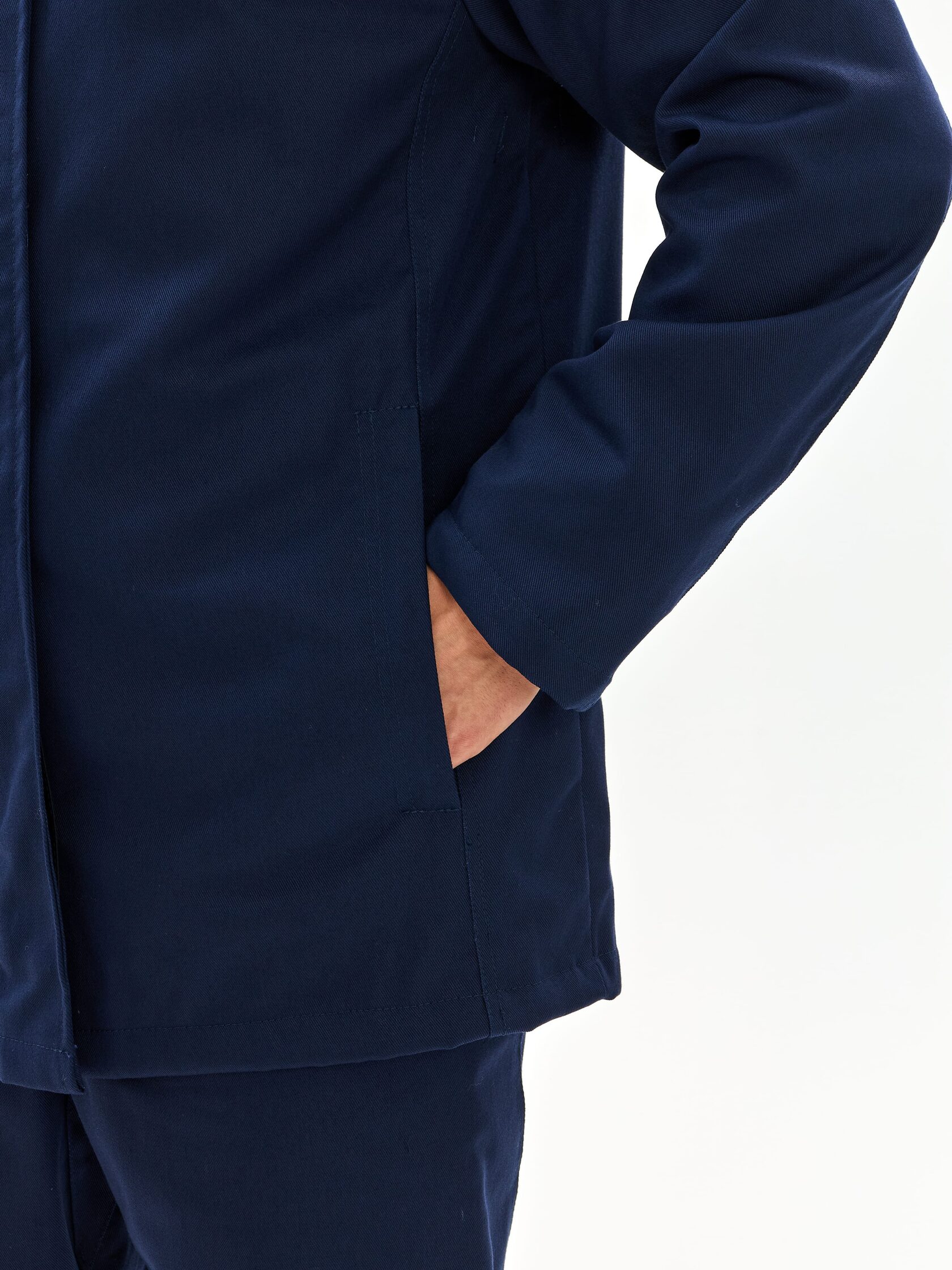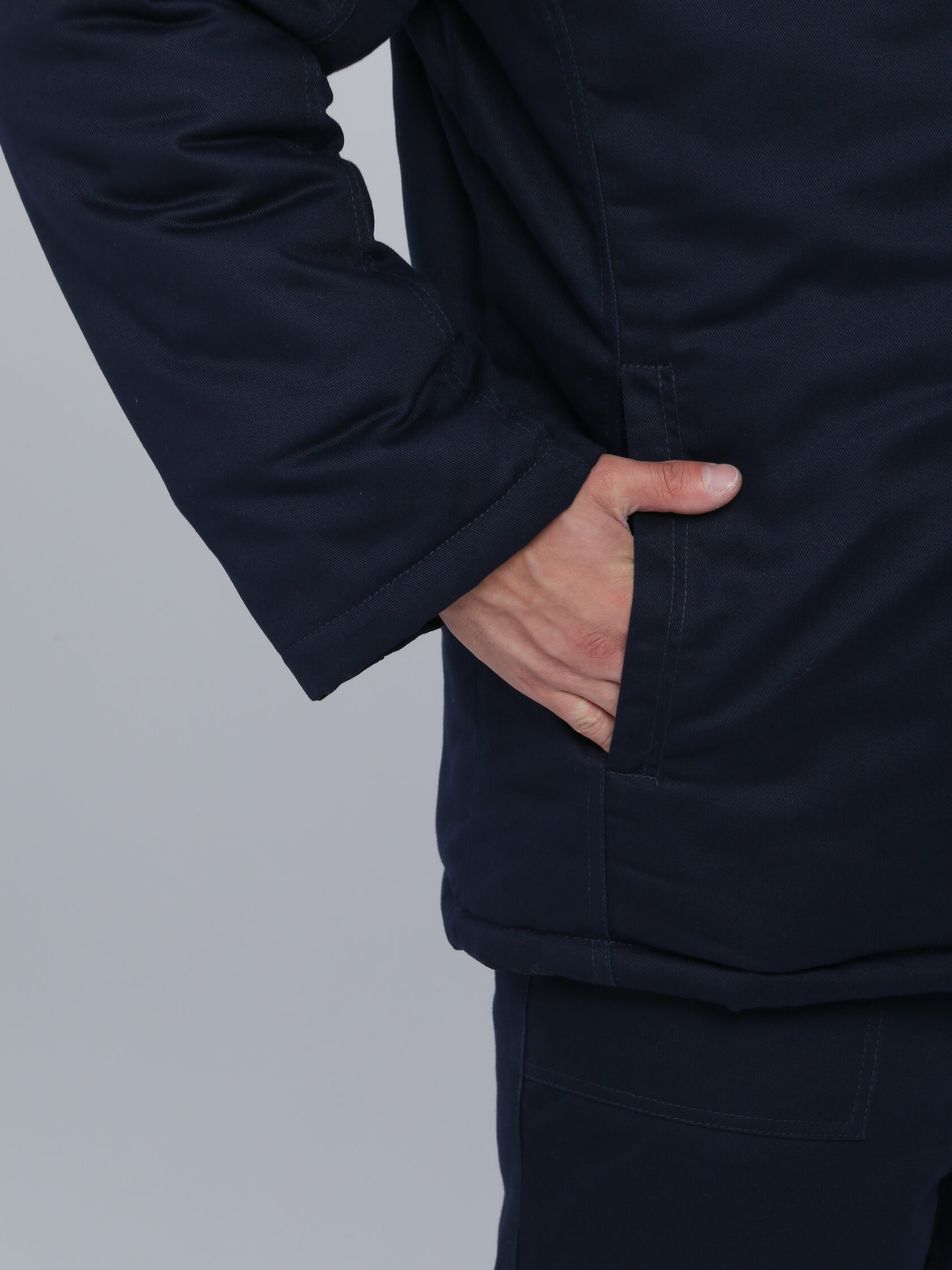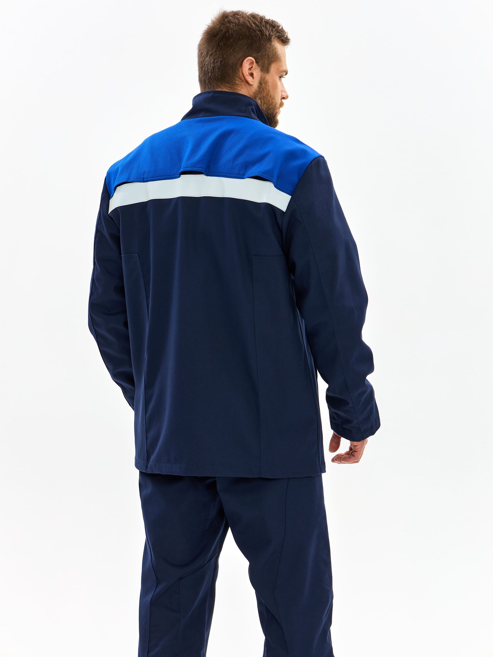 куртка с центральной супатной застежкой на петли и пуговицы, с карманами в боковых швах, с вентиляционными отверстиями по линии притачивания кокетки спины; под проймами отверстия для воздухообмена